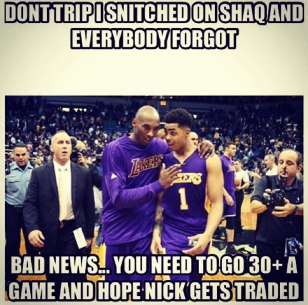 D angelo russell snitch meme. Nick young feud explained new 80 comments the lakers marquee rookie filmed nick young admitting that he cheated on his famous fiancée except without young s consent. A collection of memes and jokes from the ongoing feud between lakers guards d angelo russell and nick young. 3 weeks ago. During his introductory press. Image via complex original. Thanks for watching our new vines 2016. The most hilarious memes and reactions to d angelo russel snitching bossip.